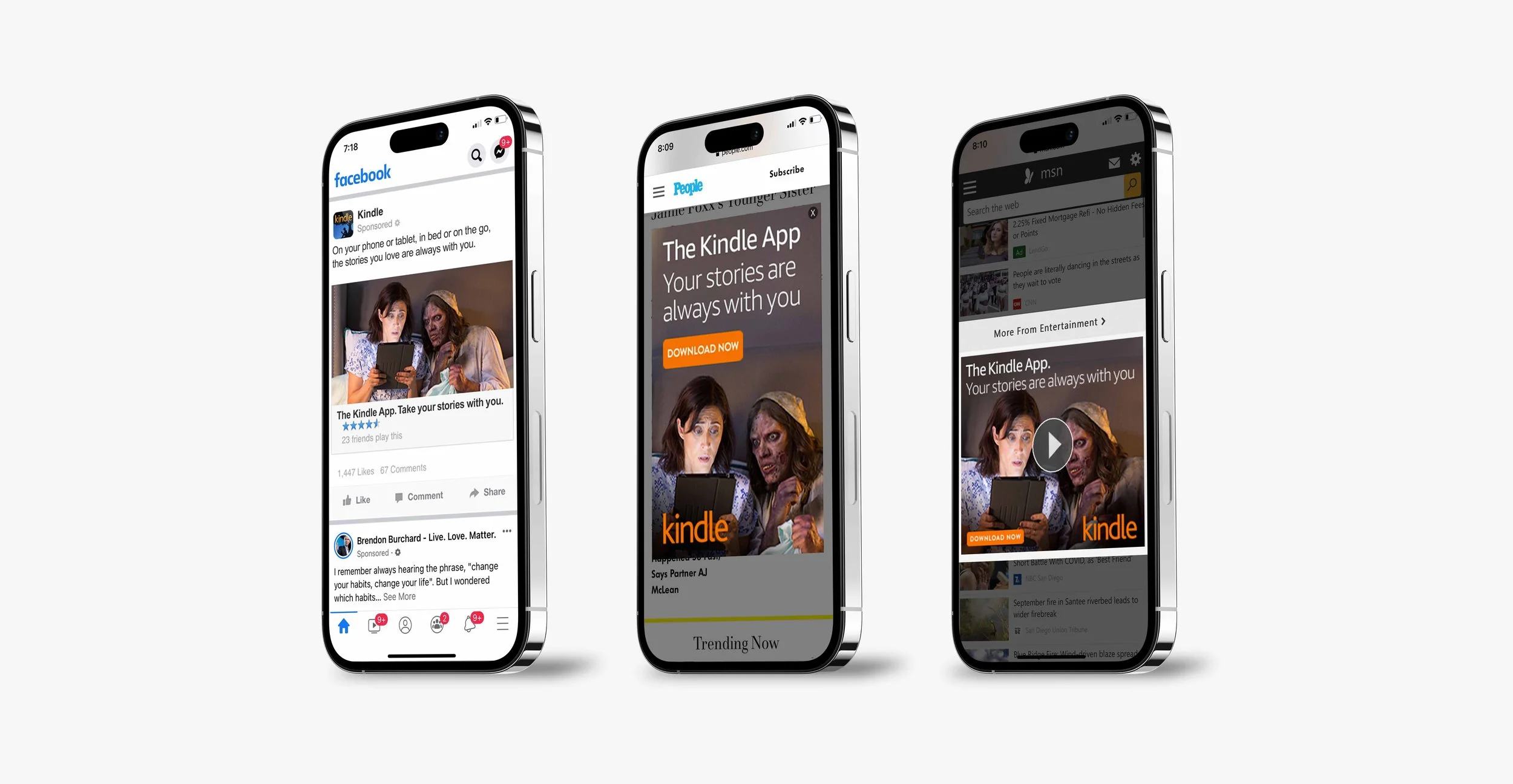 I was asked to lead the design for a campaign showcasing the Kindle app's key value: access to books on any device. The objective was to drive more Kindle app downloads.